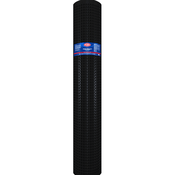 Laminado de polietileno de alta densidad, que da lugar a un plástico semi-rígido derivado de una mezcla de productos vírgenes y reciclados. El laminado es extruido y moldeado de tal modo que conforma hoyuelos con profundidad aprox. de 7 mm, conformando una cara plana y la otra con salientes para generar espacios de aire entre el sistema impermeable y el sistema de drenes.